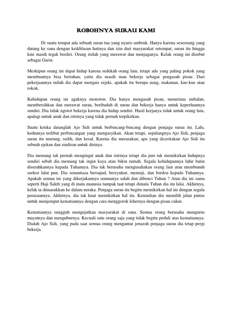 DOC) Cerpen Robohnya Surau Kami karya AA Navis | Nara Aska - Academia.edu
