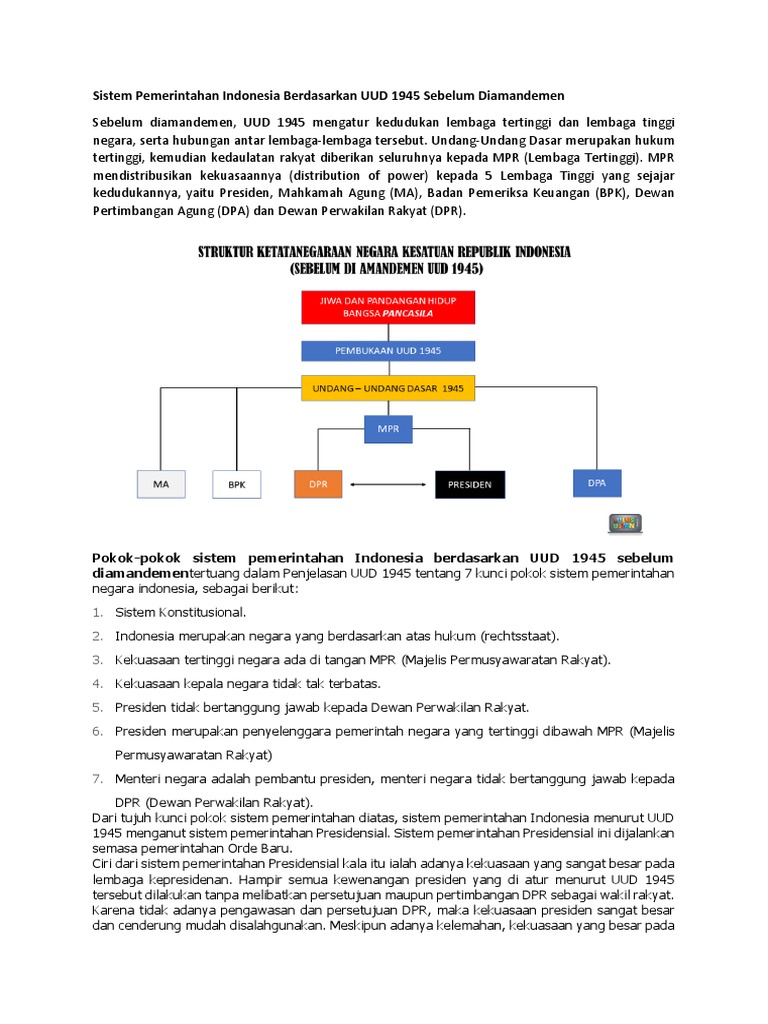 Sistem Ketatanegaraan Indonesia Sebelum Dan Sesudah Amandemen Uud 1945 - [DOCX Document]