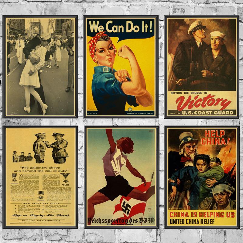 Vintage Poster World War II The Victory Kiss/We Can Do It Retro Poster Kraft Paper Wall For Home/Room/Bar Decor Painting | Shopee Singapore