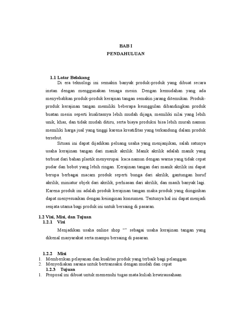 Contoh Visi Misi Proposal Usaha Kerajinan - Berbagi Contoh Proposal