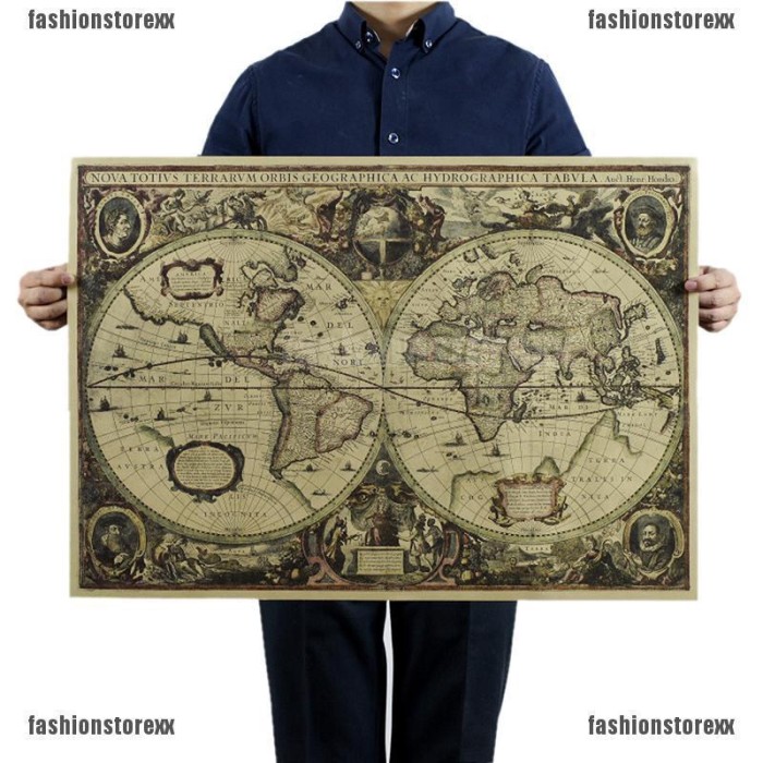 Jual Poster Peta Dunia Gaya Vintage Retro Bahan Kertas Ukuran Besar - Jakarta Barat - Vendif | Tokopedia