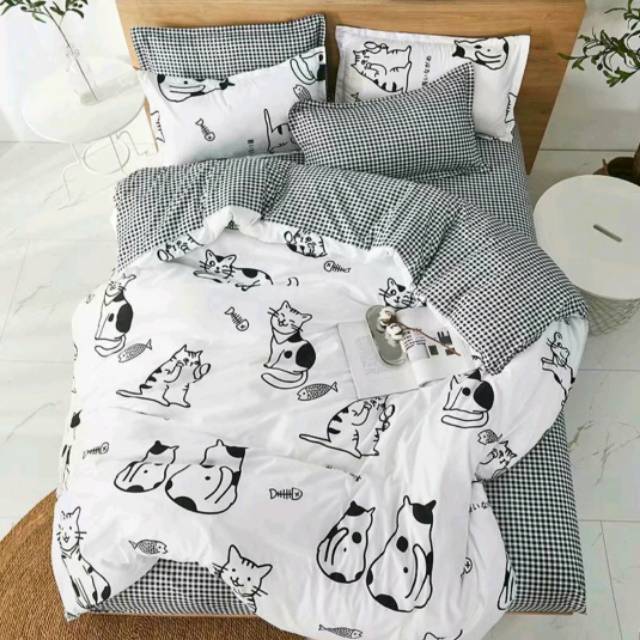 Sprei dan Bed Cover Ukuran No 3 Single 120 x 200 Hitam Putih Motif Kucing Adem Bagus High Quality | Shopee Indonesia