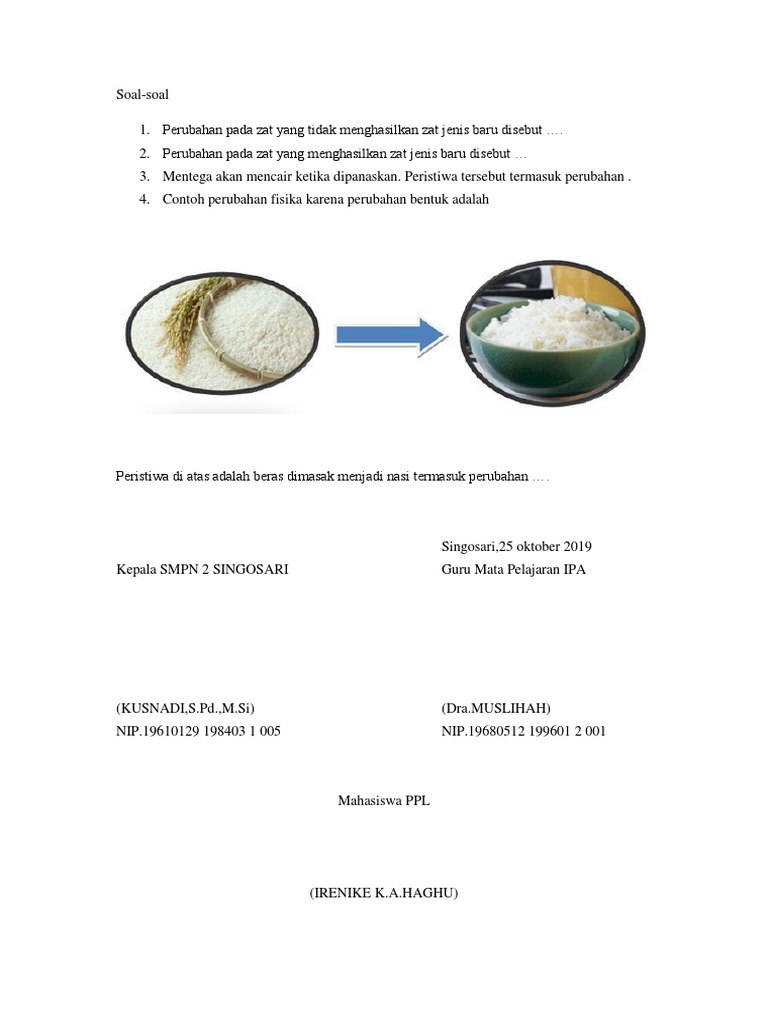 Beras Menjadi Nasi Termasuk Perubahan