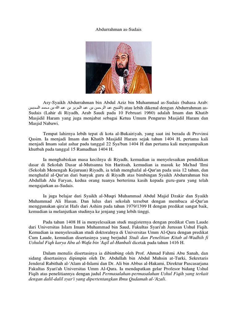 BIOGRAFI Abdurrahman as-sudais