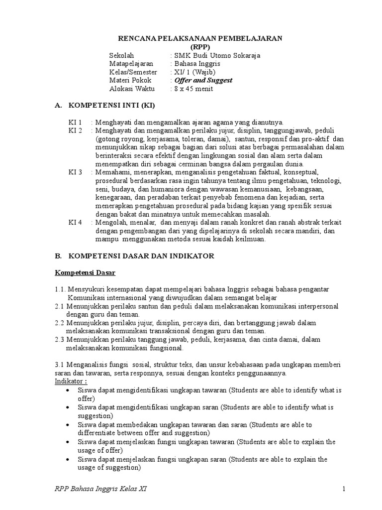 RPP Bahasa Inggris Kelas XI