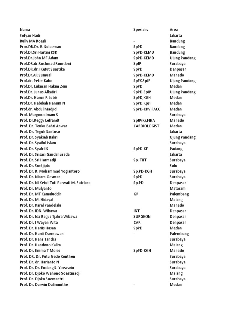 Daftar Dokter Di Indonesia