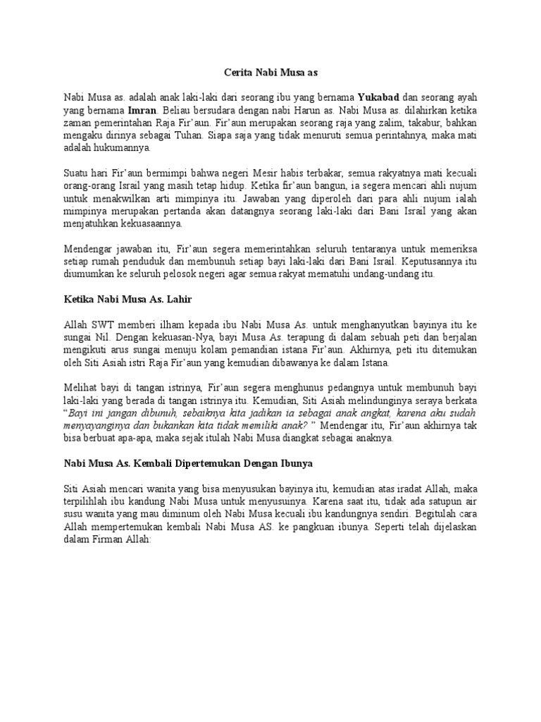 DOC) KISAH NABI MUSA AS | Cut Marda - Academia.edu