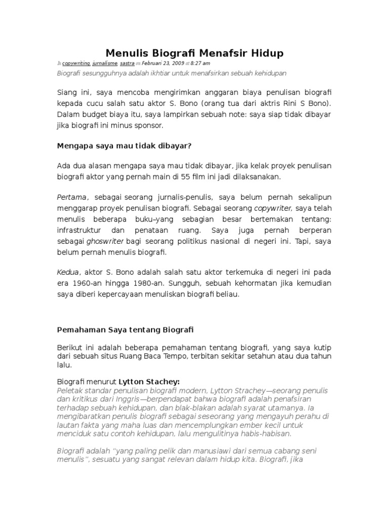 Menulis Biografi Menafsir Hidup