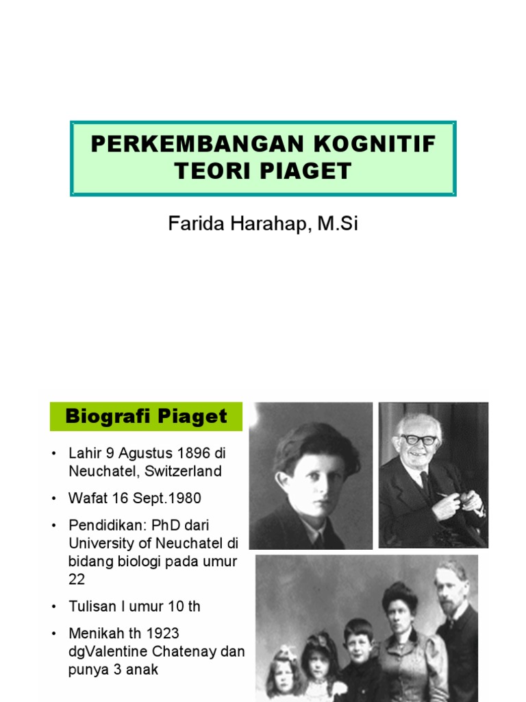 Teori perkembangan Kognitif Piaget 1.pdf - PERKEMBANGAN KOGNITIF TEORI PIAGET Farida Harahap M.Si Biografi Piaget \u2022 Lahir 9 Agustus 1896 di Neuchatel | Course Hero