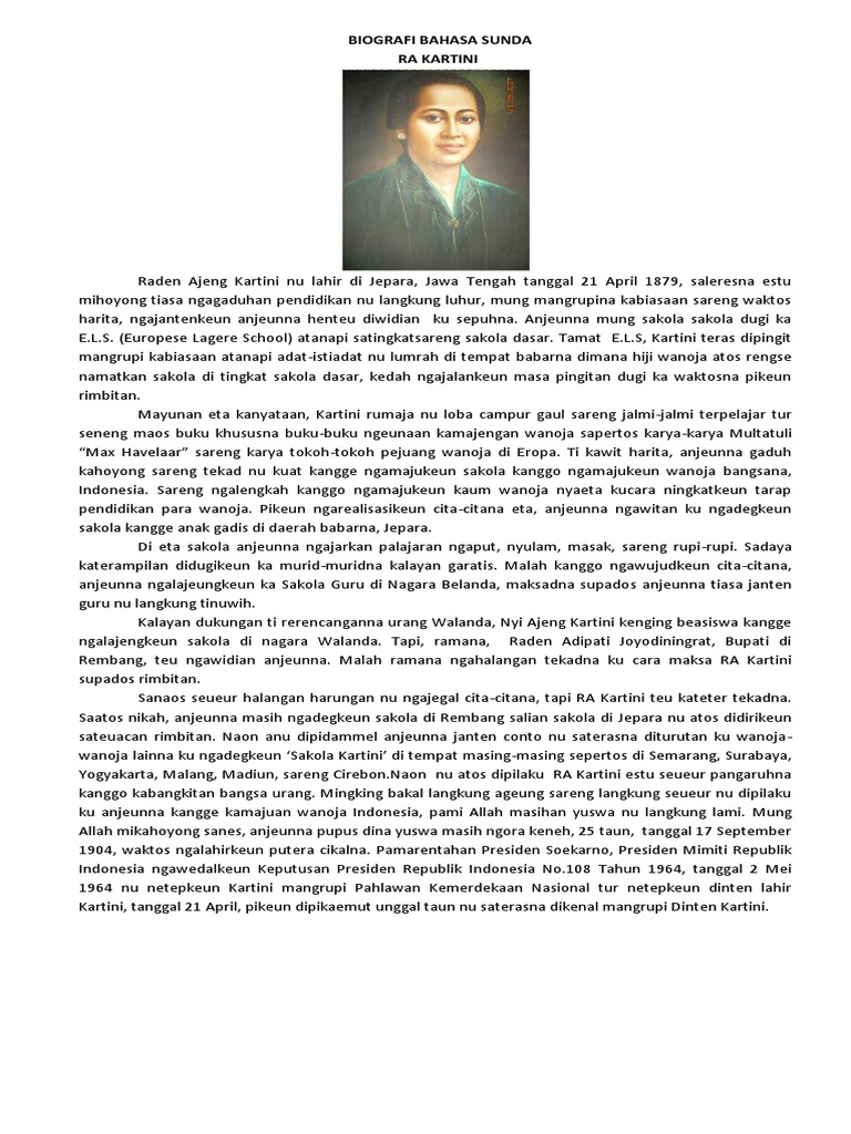 Biografi Ra Kartini Dalam Bahasa Sunda Singkat