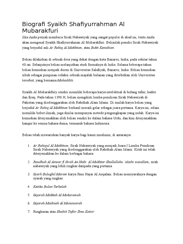 Sirah Nabawiyah Syaikh Shafiyyurrahman Al Mubarakfuri Pdf - aerologoboss