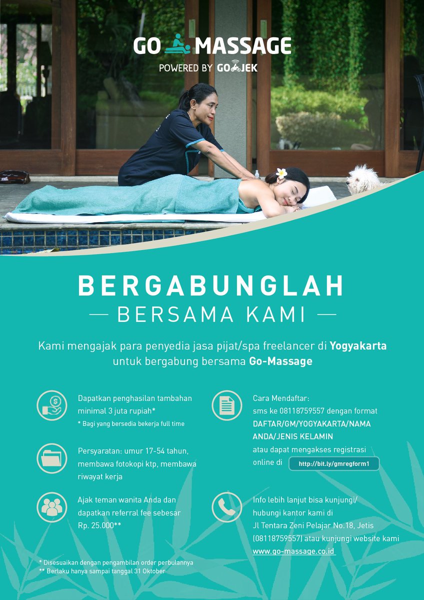 GO-MASSAGE Indonesia on Twitter: “GO-JEK INDONESIA-Lowongan TERAPIS PIJAT GO-MASSAGE, daftar: https://t.co/EZQsuraysk #infoloker #lokermedan #GOJEK #GOMASSAGE @Loker_Medan… https://t.co/9TH03lN622”