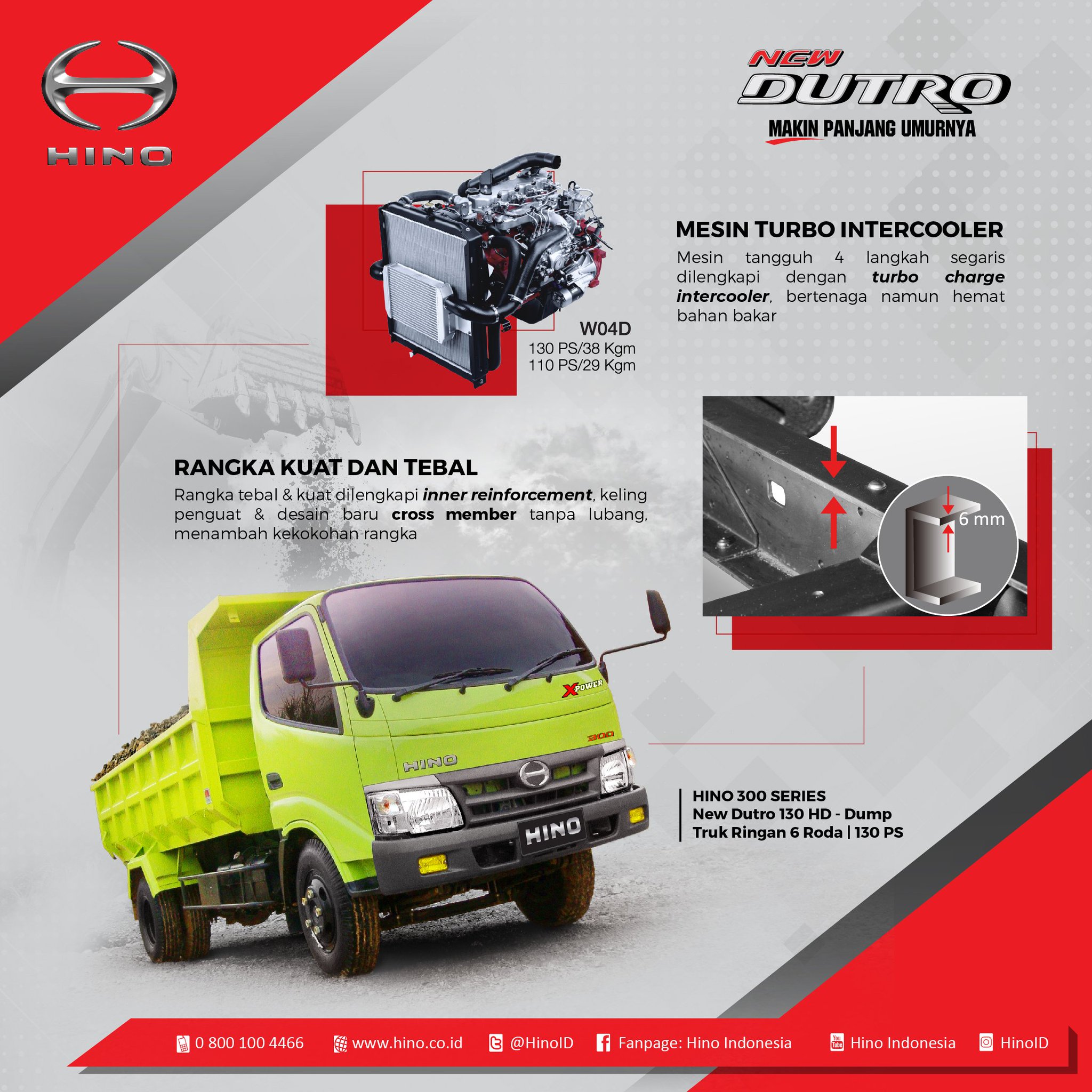 Hino Indonesia on Twitter: “Hino Dutro 130 HD, dilengkapi mesin 4 langkah segaris Turbo Charge Intercooler dan Rangka tebal & kuat untuk mengangkut beban besar, nyaman dan aman seperti angkutan perkebunan dan