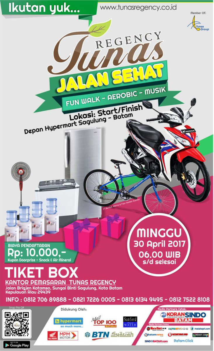PERUMAHAN TUNAS REGENCY BATAM on Twitter: “IKUTAN JALAN SANTAI YUUK…..!!! Pendaftaran Rp 10.000,- DOORPRIZE : Motor Honda, Sepeda Gunung, Mesin Cuci, Kulkas, Dispenser, dll… https://t.co/dsgFOUZPUw”