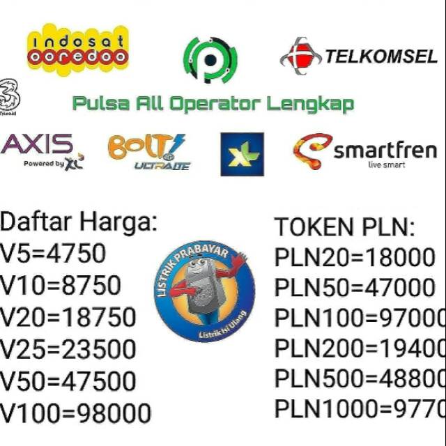 Daftar Harga Pulsa Elektrik All Operator Permata Pulsa | Permata Reload Pulsa