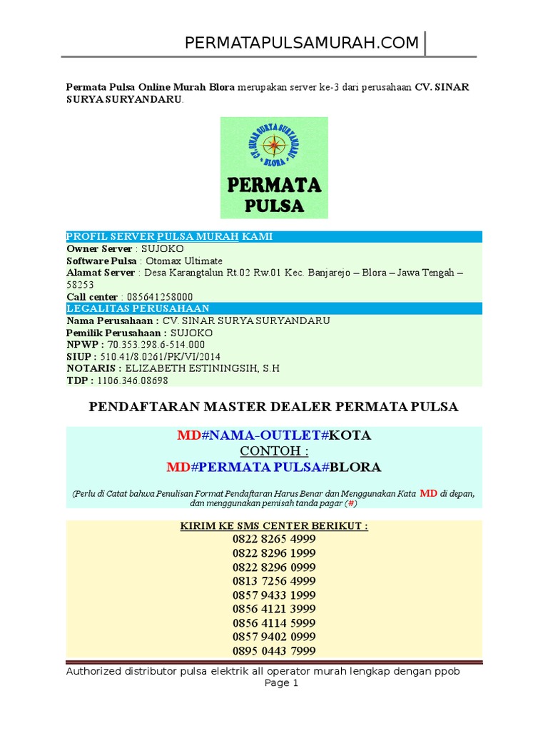 Permata pulsa Murah | CV sinar surya suryandaru | Sujoko pulsa murah 2017