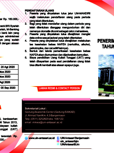 Brosur Seleksi Penerimaan Mahasiswa Baru (SPMB) UIN Antasari Tahun 2020 - Situs Resmi UIN Antasari