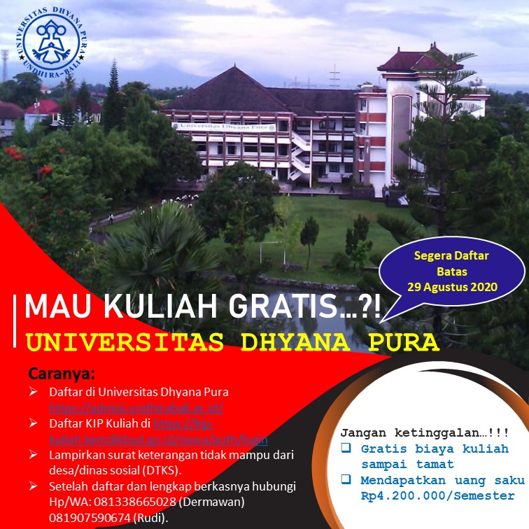 Dr. Rai Utama on Twitter: “KABAR GEMBIRA…!!! KULIAH GRATIS dI Universitas Dhyana Pura sampai lulus kuliah dan mendapatkan uang saku Rp4.200.000/semester. Segera daftarkan diri ANDA. Kesempatan hanya sekali seumur hidup. Bisa daftar