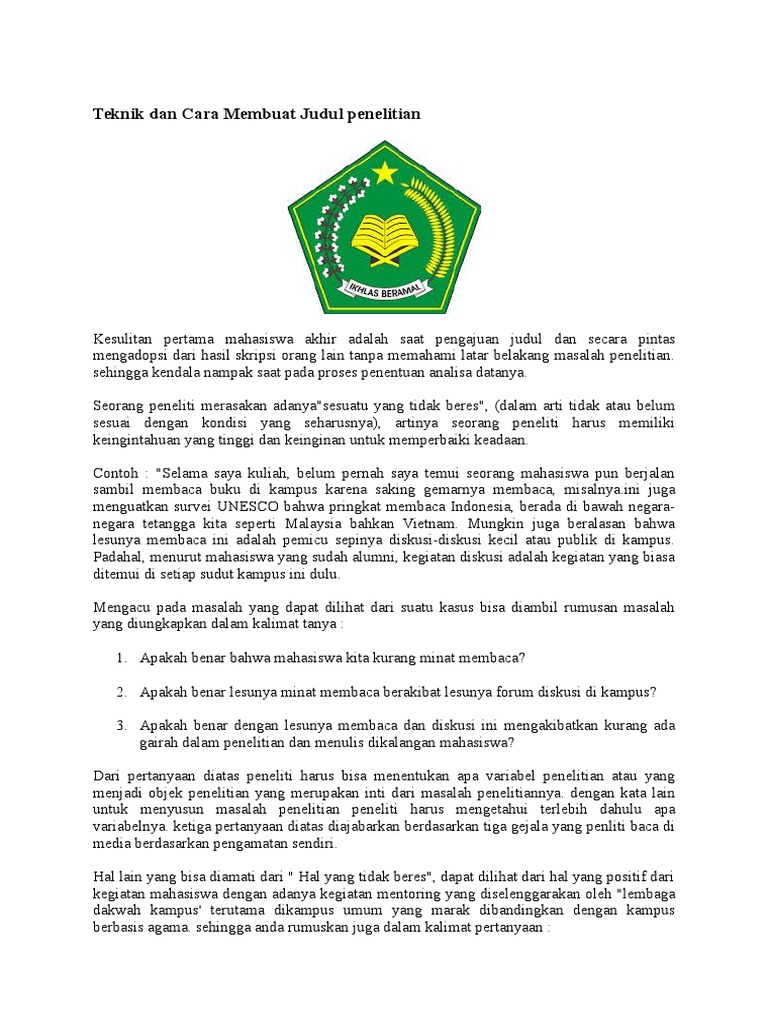 CARA MEMBUAT JUDUL SKRIPSI PENDIDIKAN AGAMA ISLAM - Master Seo …