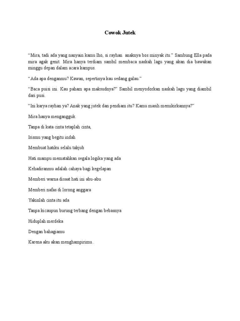 Contoh Cerpen Percintaan Cowok Jutek