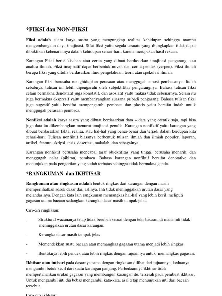 Rangkuman artikel,cerpen,diskusi,drama,hikayat,karya ilmiah,notulen,n…