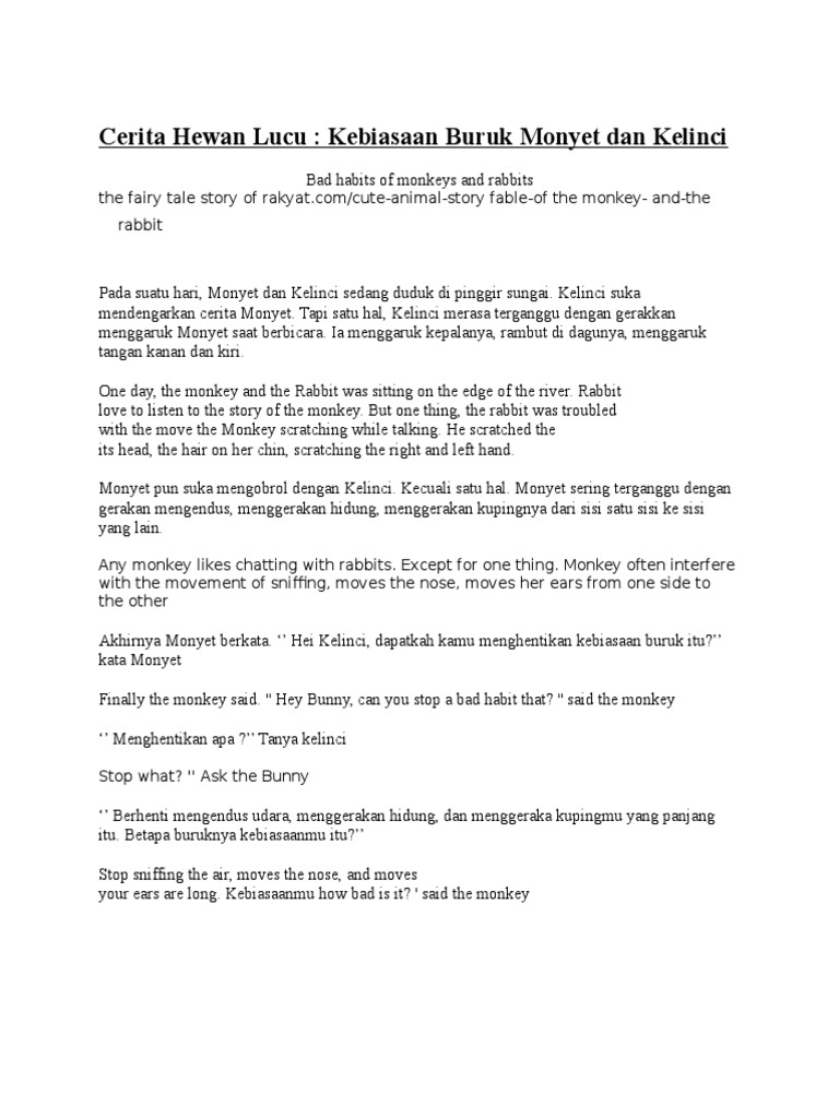 Cerita Hewan Lucu Fabel Monyet Dan Kelinci
