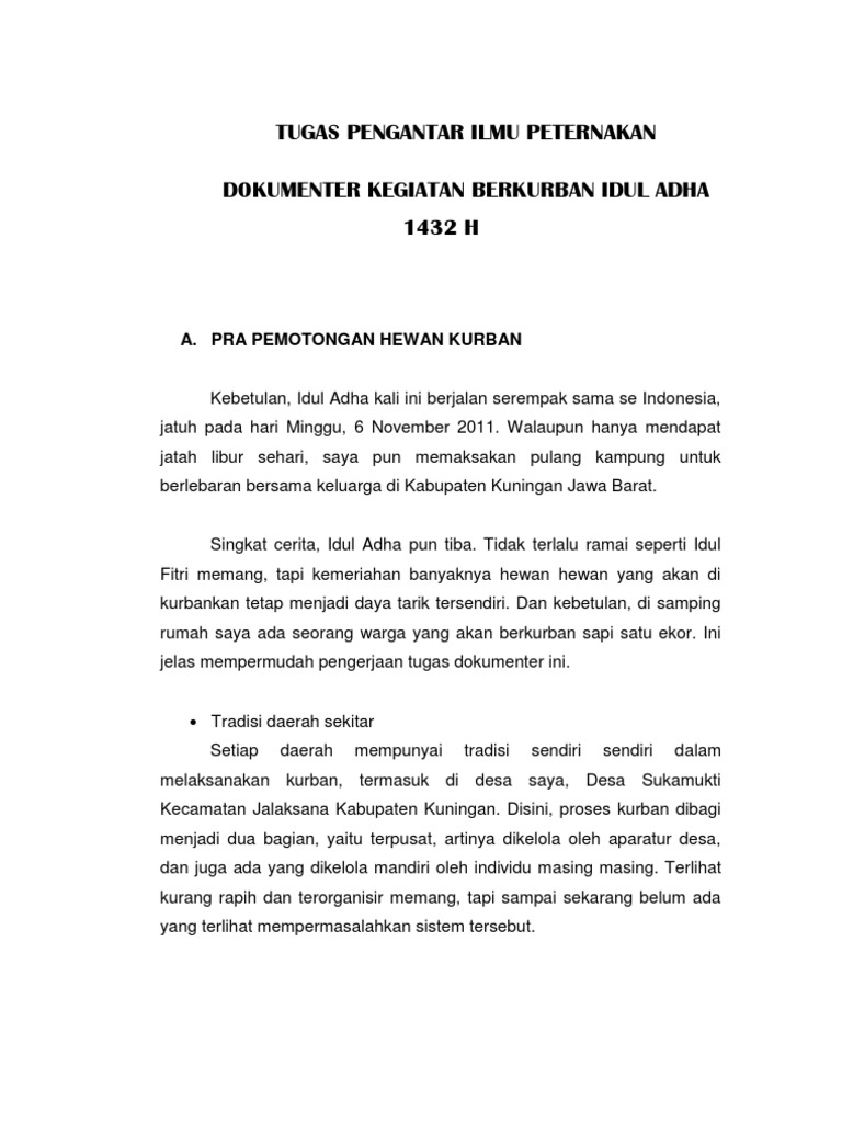 tugas pengantar ilmu peternakan dokumenter kegiatan berkurban idul adha 1432 h