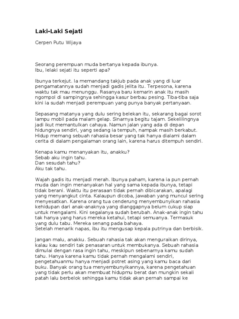 Laki-laki Sejati | Cerpen Putu Wijaya - Contoh Karya Sastra Puisi …