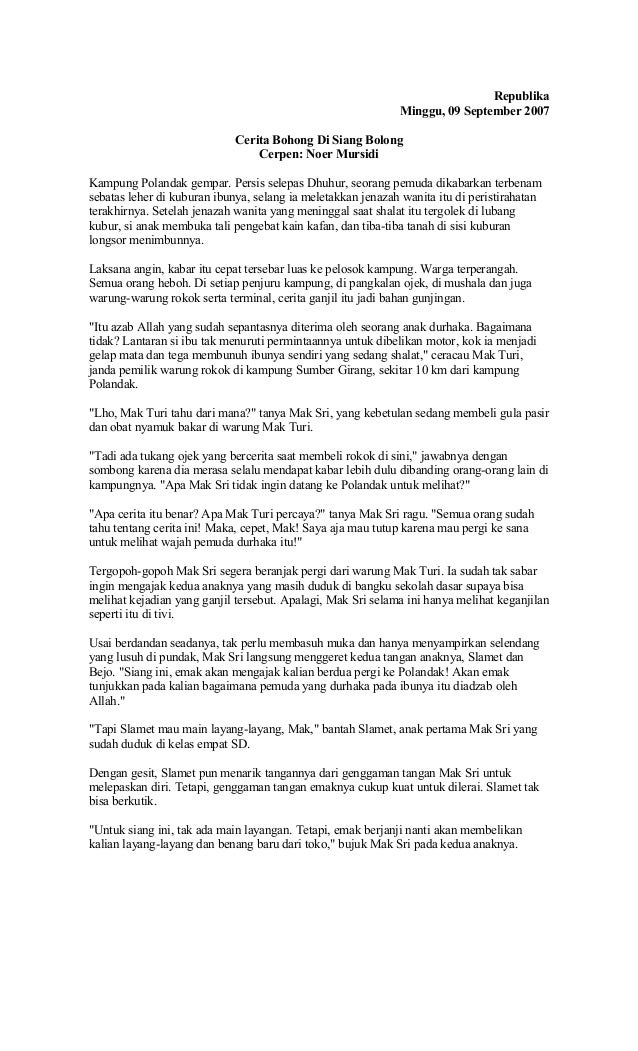 Contoh cerita pendek tentang anak durhaka, tuliskan Isi Dan pesan moral - Brainly.co.id