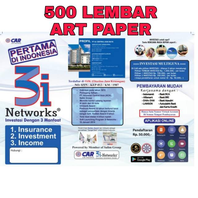 Brosur Car 3i Networks Simple 500 lembar art paper 3i network | Shopee Indonesia
