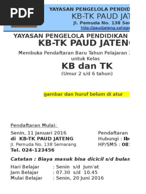 Contoh Brosur Penerimaan Siswa Baru PAUD Buatan Sendiri - PAUD JATENG