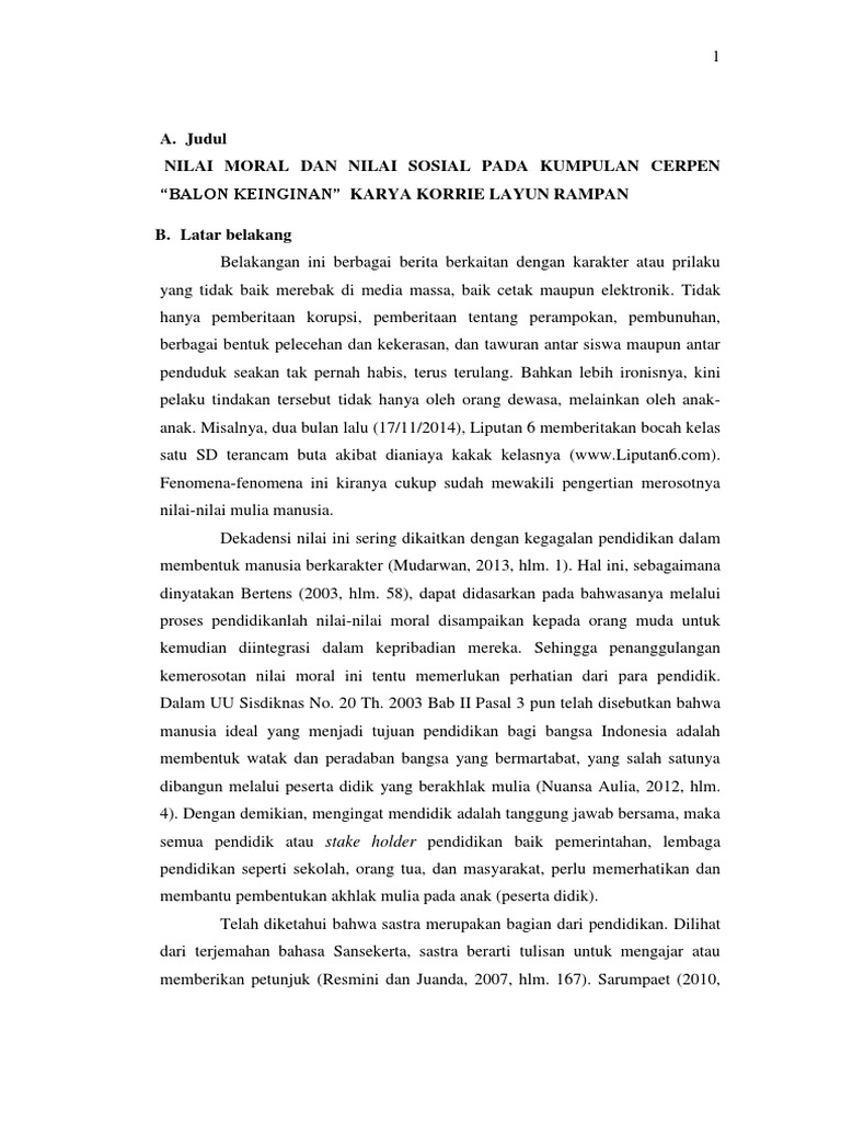 DOC) Nilai nilai yang terkandung dalam cerpen Sandal Jepit Merah | Andrian Siska - Academia.edu