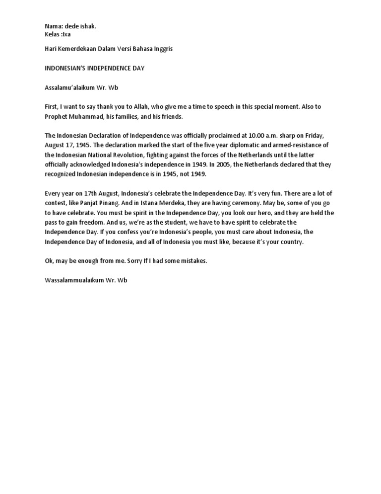 Contoh essay dalam bahasa inggris dan terjemahannya