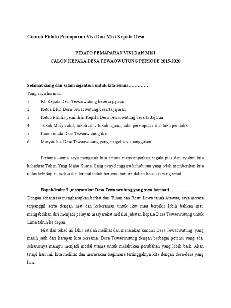Contoh Pidato Pemaparan Visi Dan Misi Kepala Desa