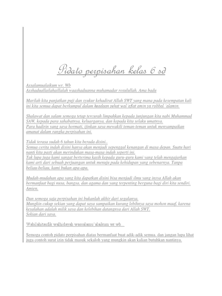 PDF) CONTOH PIDATO 51 Pidato Perpisahan SD | Farid Ramlan - Academia.edu