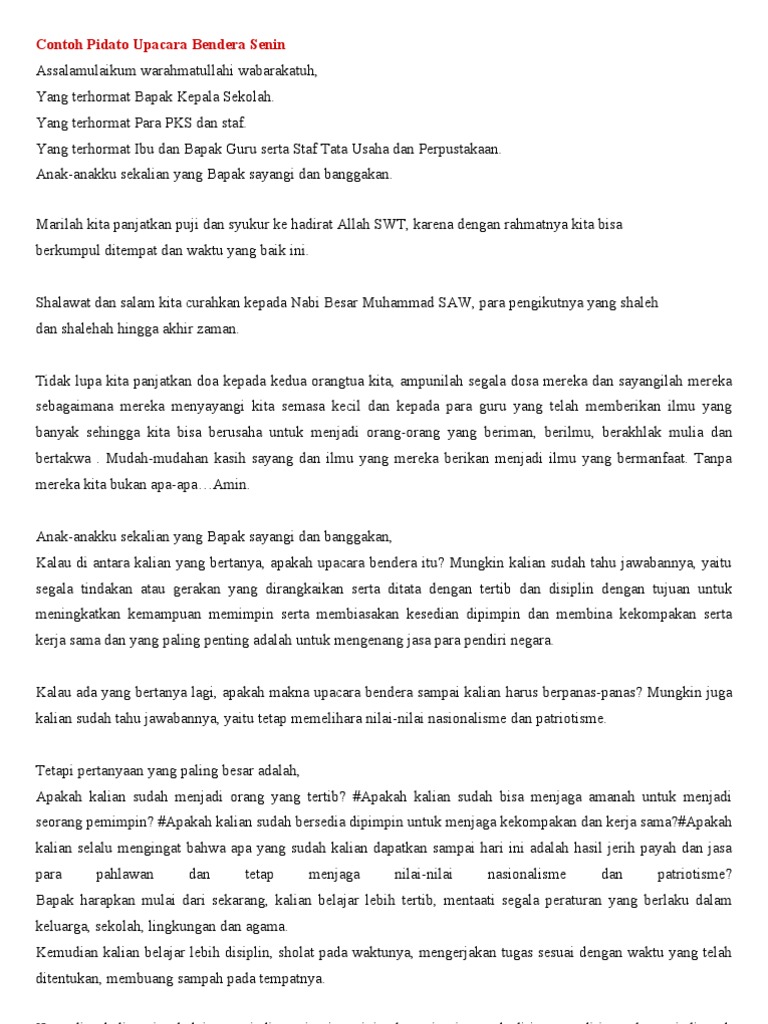 contoh soal shu: Contoh Pidato Kebangsaan Singkat