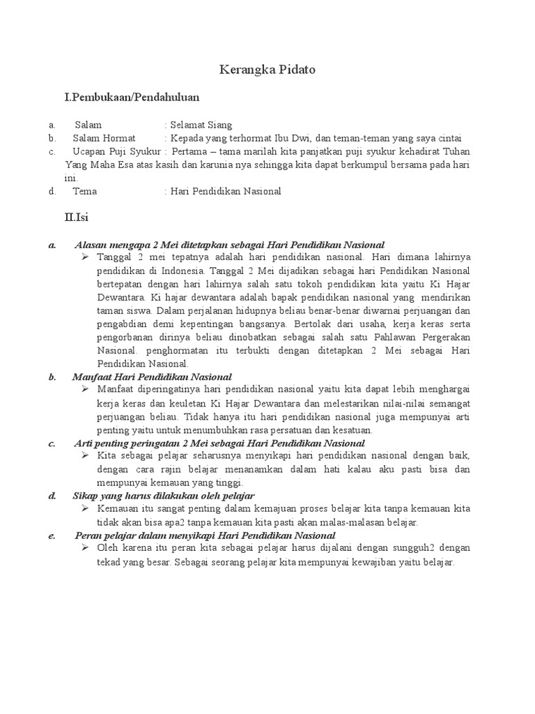 DOC) Contoh Naskah Pidato Hari Pendidikan Nasional 2 | Muhamad …