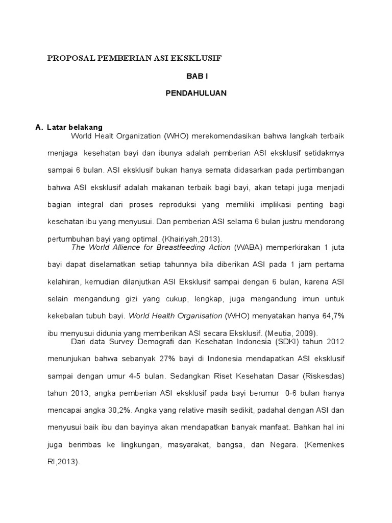 DOC) PROPOSAL PERSEPSI IBU TENTANG PEMBERIAN ASI EKSKLUSIF | Miming Arja - Academia.edu