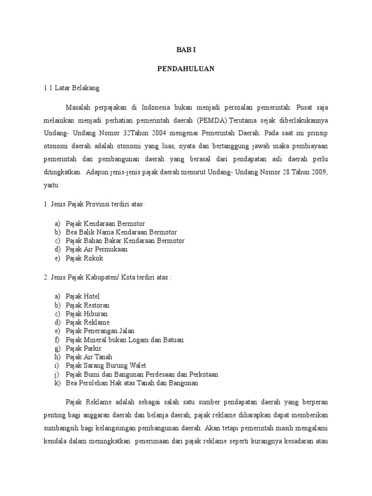 skripsi pengaruh pajak BAB I