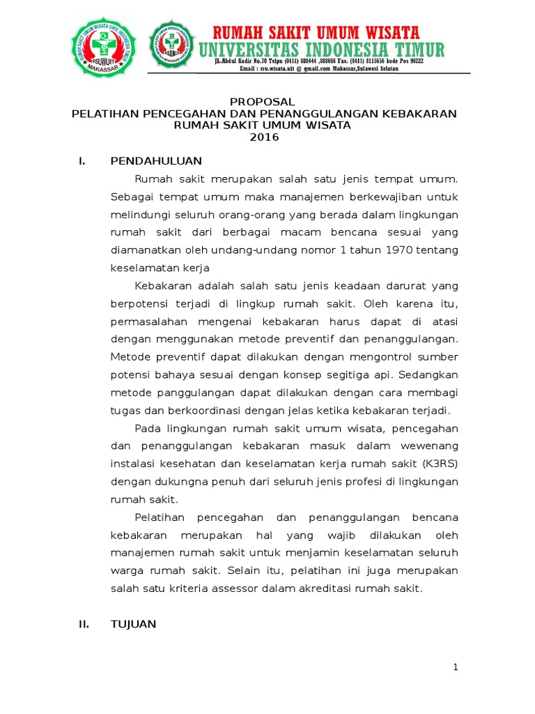 PROPOSAL PELATIHAN PENCEGAHAN DAN PENANGGULANGAN KEBAKARAN RUMAH SAKIT UMUM WISATA PDF Download Gratis