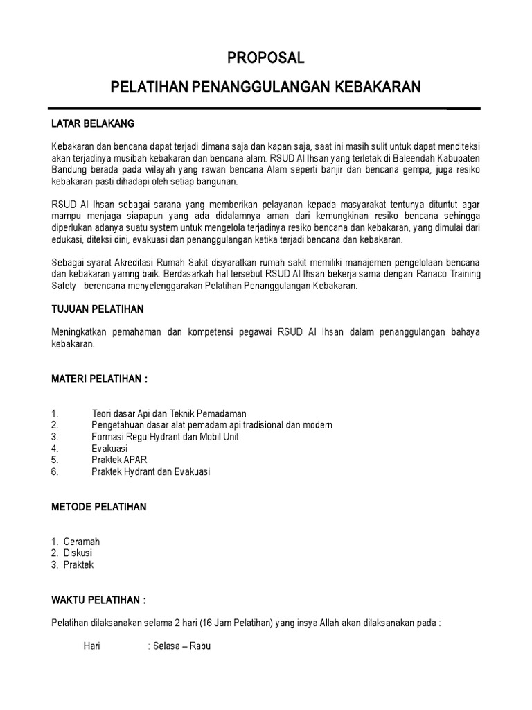 Contoh Proposal Pengajuan Pelatihan Pemadam Kebakaran - Berbagi Contoh Proposal