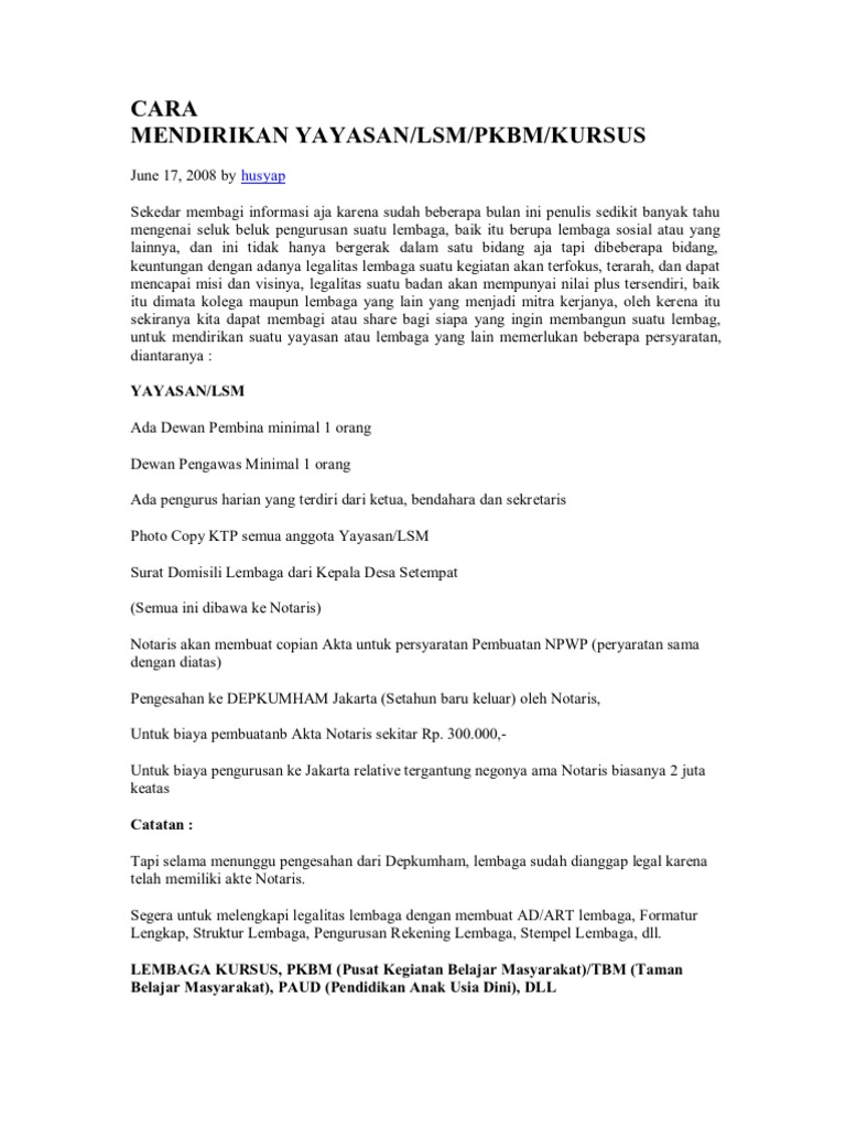 DOC) Cara Mendirikan Yayasan PAUD TK KB TPA + Persyaratannya | kang hendro - Academia.edu