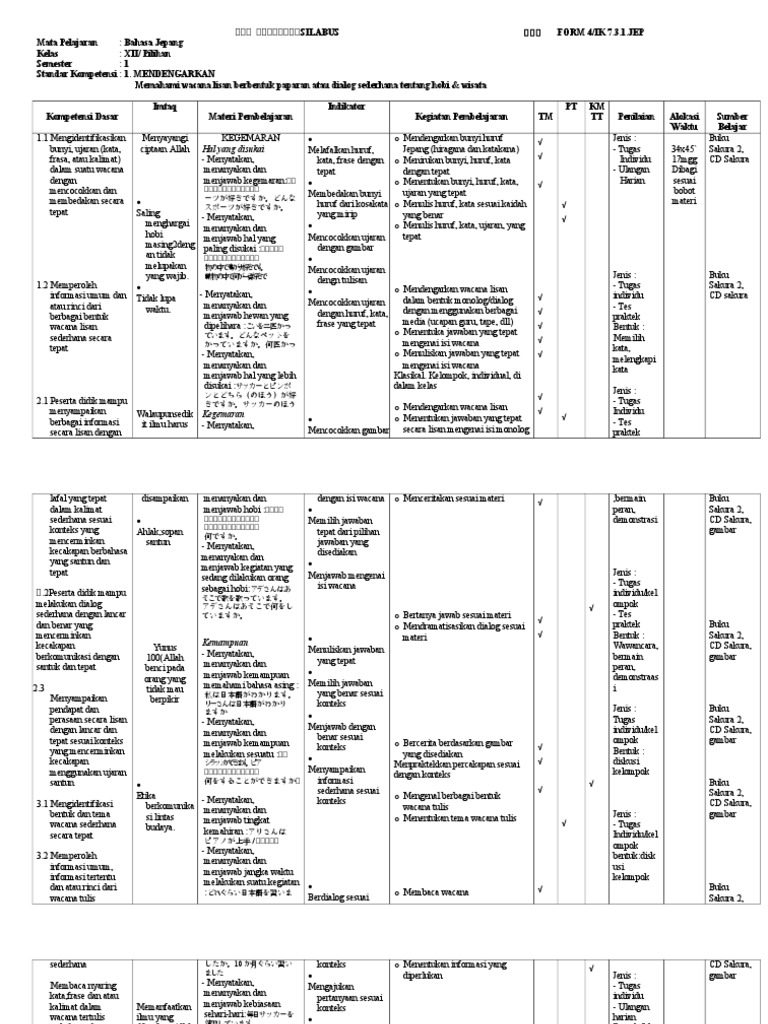 SILABUS Bahasa Jepang Kelas XII