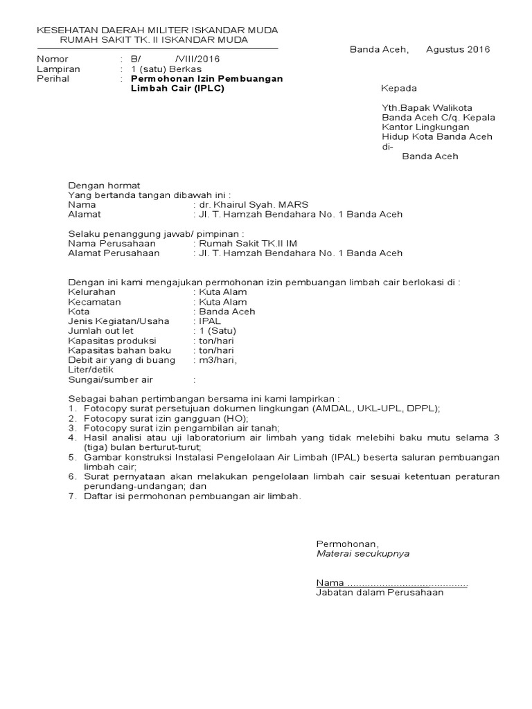 Contoh Form-ulir & Surat Permohonan Izin Pembuangan Limbah Cair, Catat Ya Bro | FITRAH CEMERLANG™