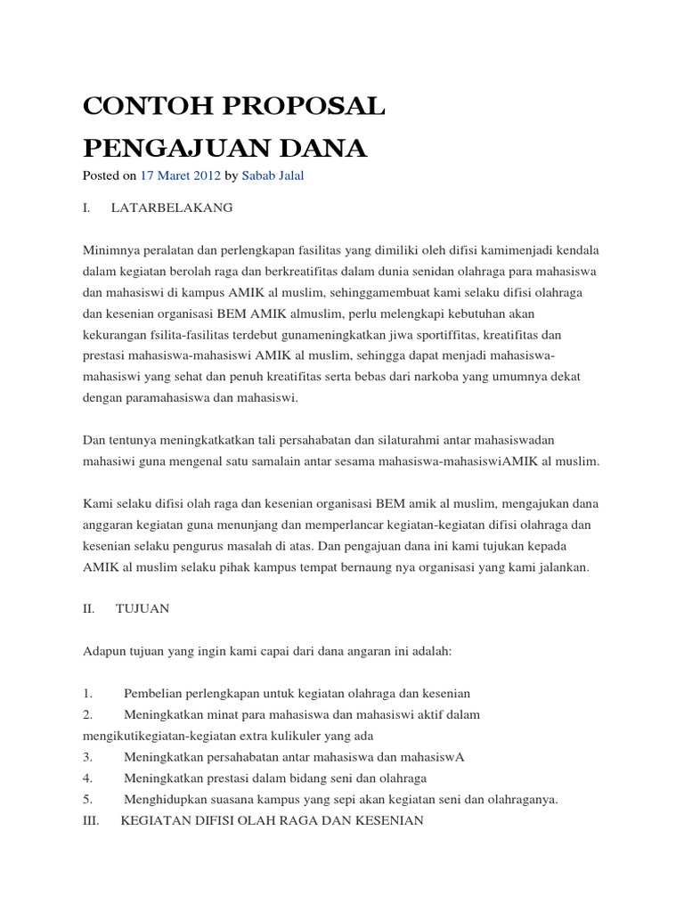 Contoh proposal pengajuan dana pdf nbsp;· Kegiatan. contoh proposal pengajuan dana sponsor pdf Kepada Mahasiswa tentang mekanisme tata cara Pengajuan … contoh proposal pengajuan