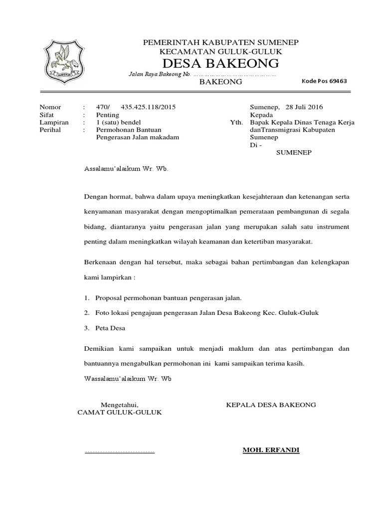 Contoh Surat Permohonan Bantuan Perbaikan Jalan - Contoh Seputar Surat