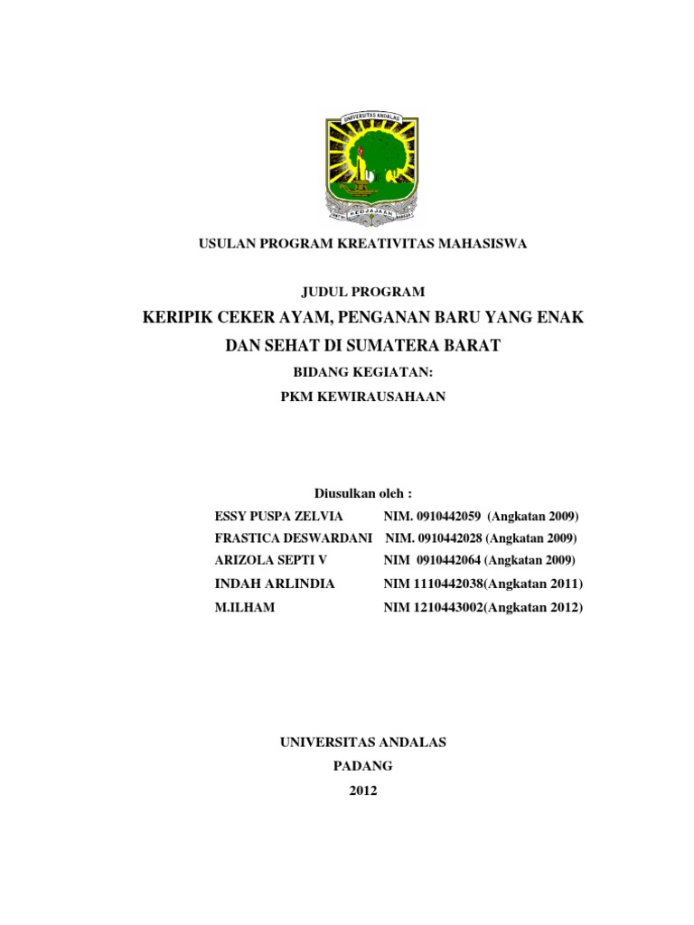 Contoh Cover Proposal Pkm Kewirausahaan - Kumpulan Contoh Makalah Doc Lengkap