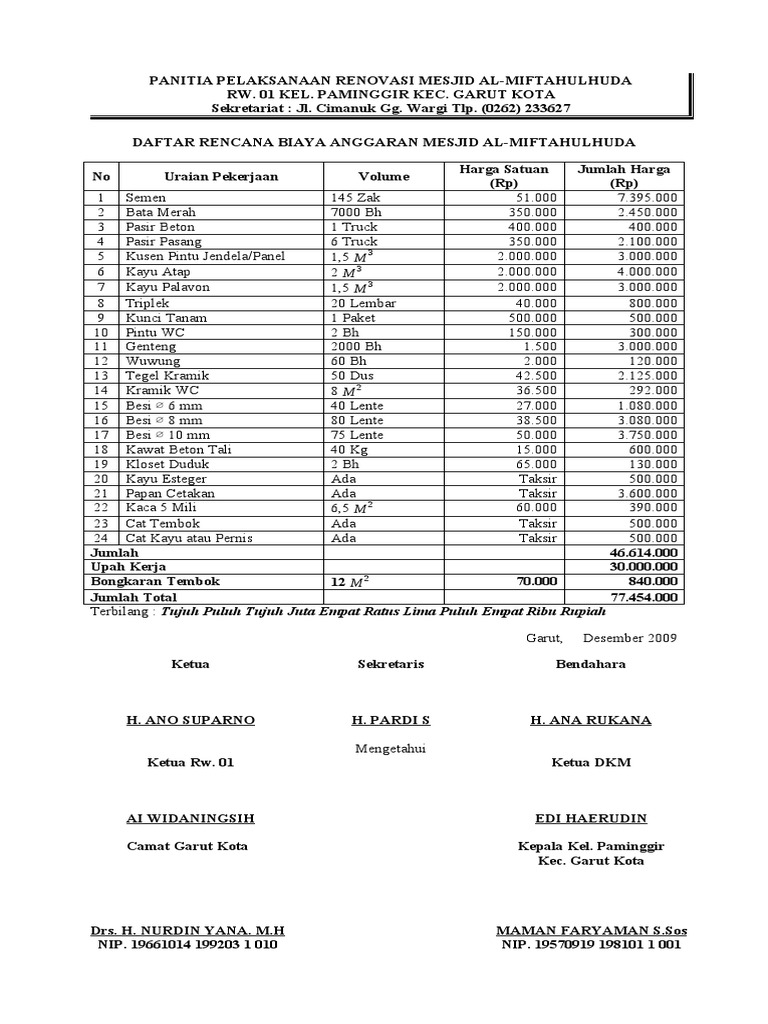 Contoh Rab Proposal Renovasi Masjid