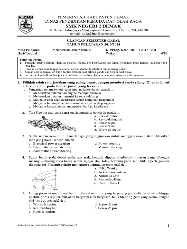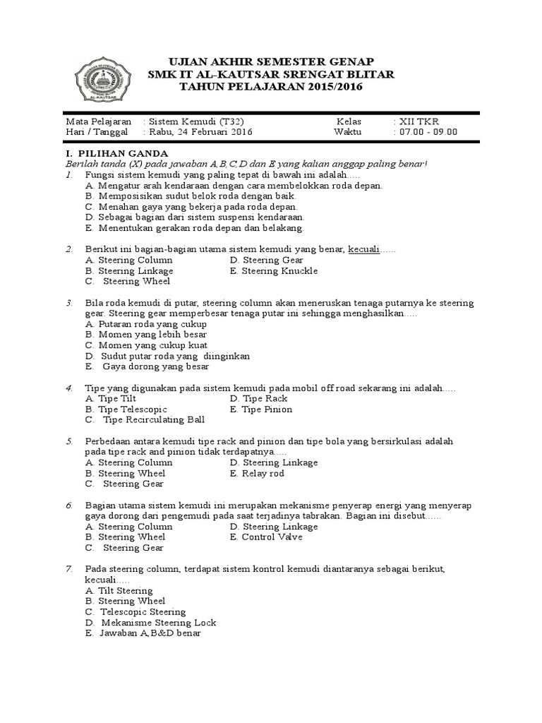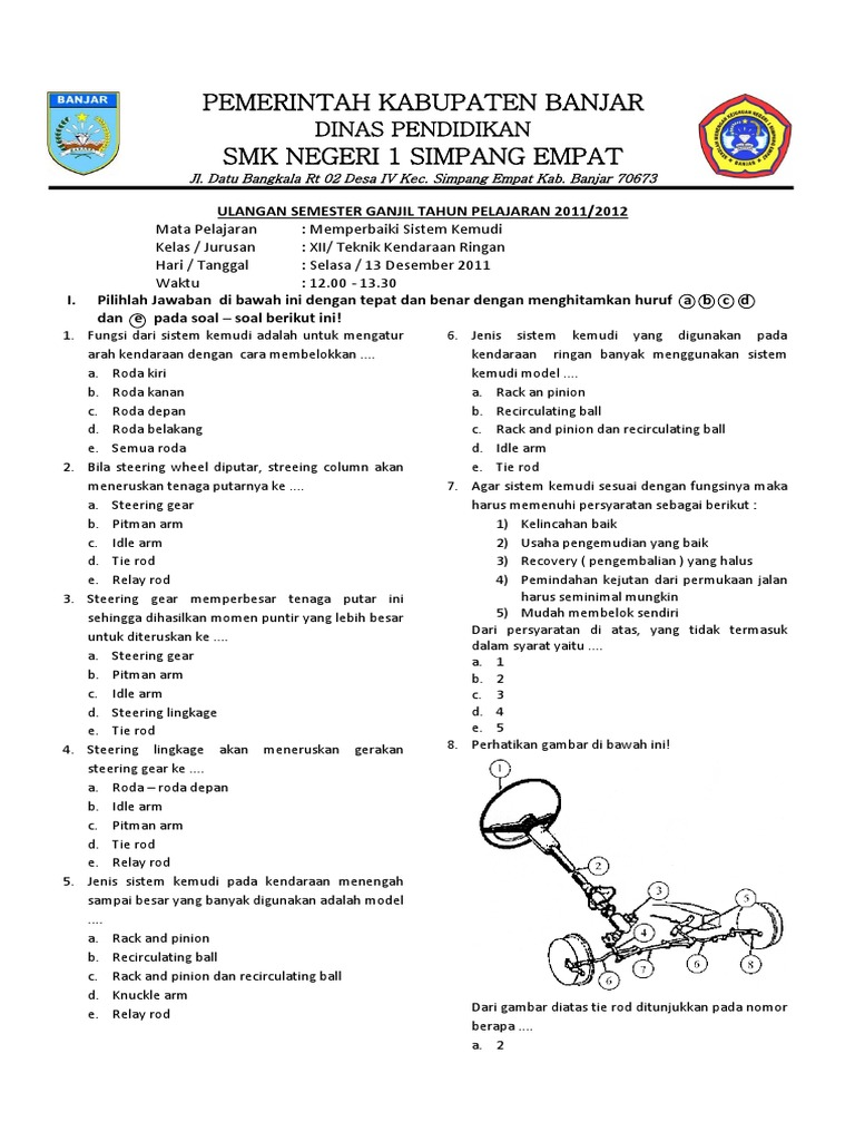 Soal Uas Memperbaiki Sistem Kemudi Xii