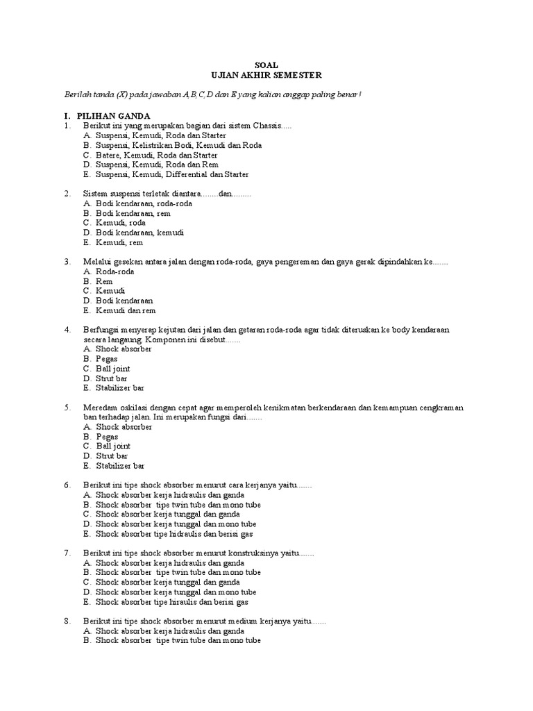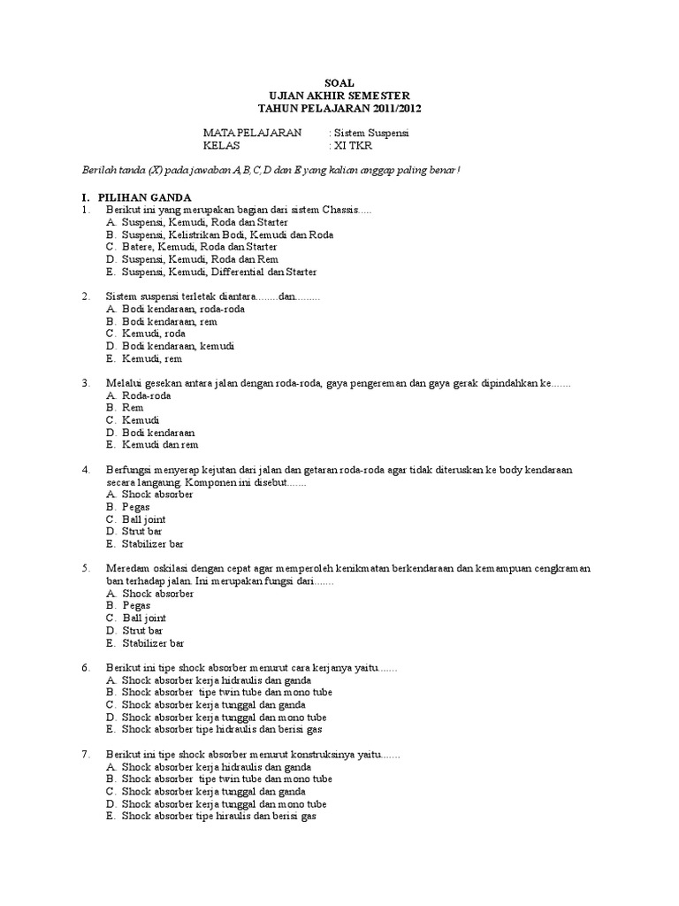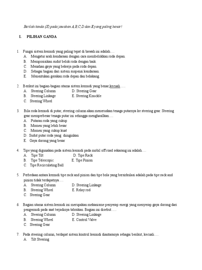 Contoh Soal Dan Jawaban Pilihan Ganda Sistem Kemudi - Peranti Guru